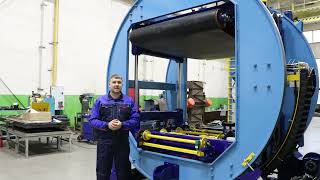 Для безопочных форм каретка оснащается ленточным транспортером, для опочных – рольгангами. Установка имеет гидравлические привода, которые снабжены устройствами ускорения/замедления движения. Скорость кантования, усилие зажатия, плавность запуска и остановки настраиваются в зависимости от производственных условий. Работа кантователя полностью автоматизирована. Кантователь поставляется в комплекте с гидравлической станцией.